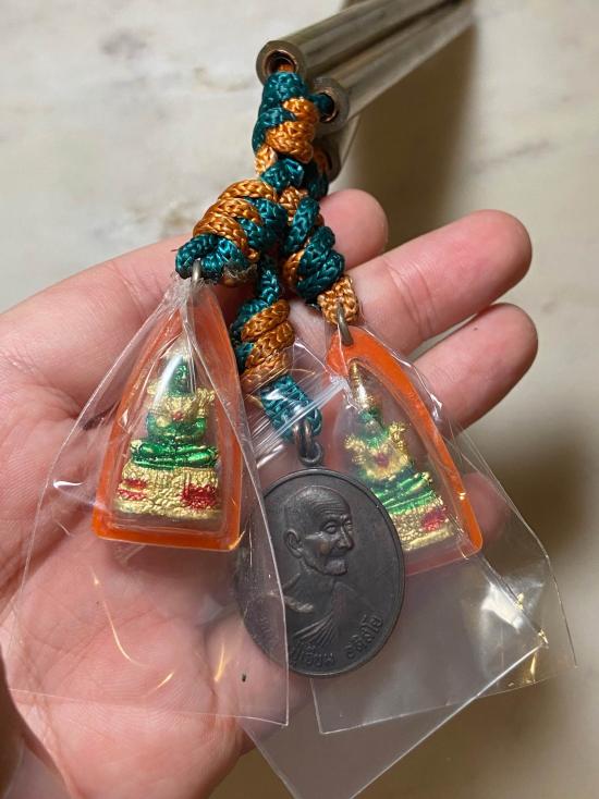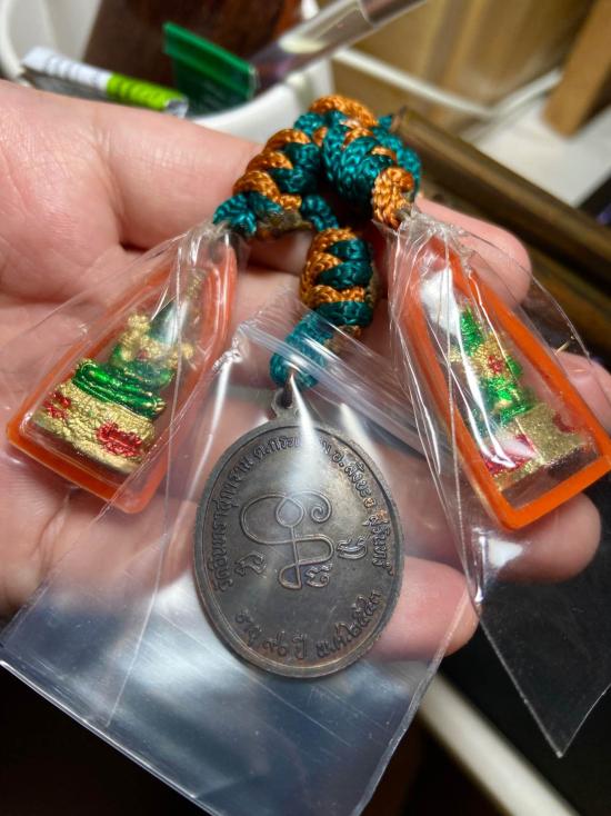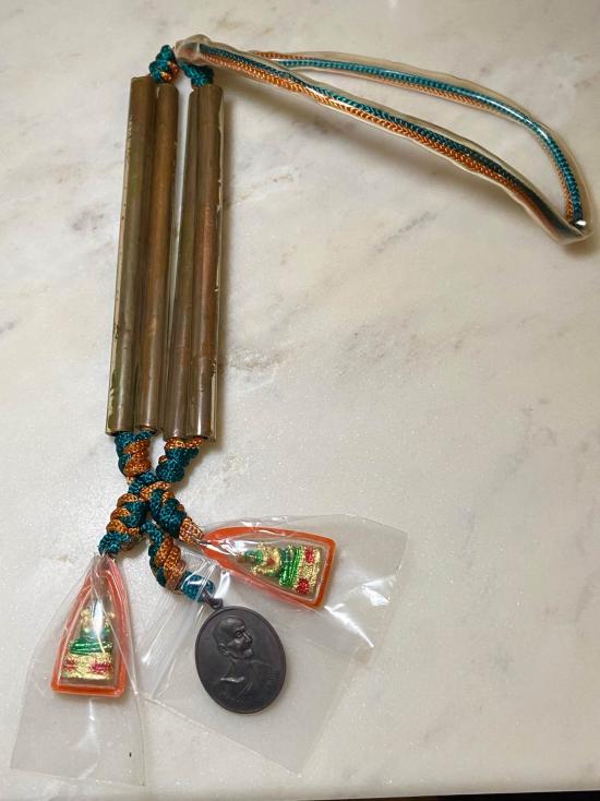 เหรียญหลวงปู่เจียม อติสโย วัดอินทราสุการาม สุรินทร์ พร้อมตะกรุด ชุดใหญ่ตะกรุด 4 ดอก ปี 2543