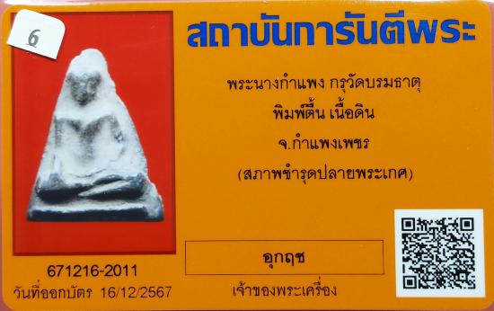 ชื่อพระเครื่อง พระนางกำแพง กรุวัดบรมธาตุ พิมพ์ตื้น เนื้อดิน จ.กำแพงเพชร พร้อมบัตรรับรองจากจีพระ