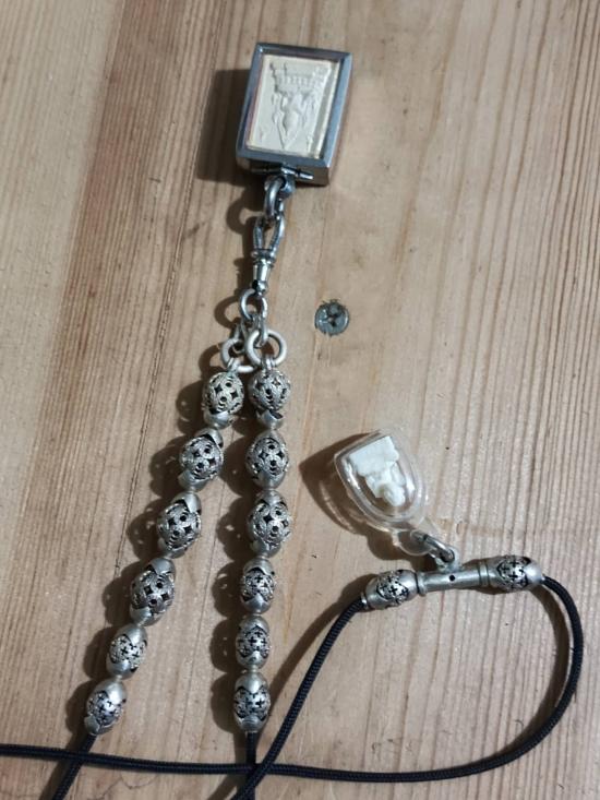 สร้อยเม็ดเงินแท้เก่า สั่งทำ ยาว 36 นิ้วสวมหัวได้ หนัก 23 กรัมกว่า สวยสมบูรณ์ แขวงพระด้านหลังได้ |