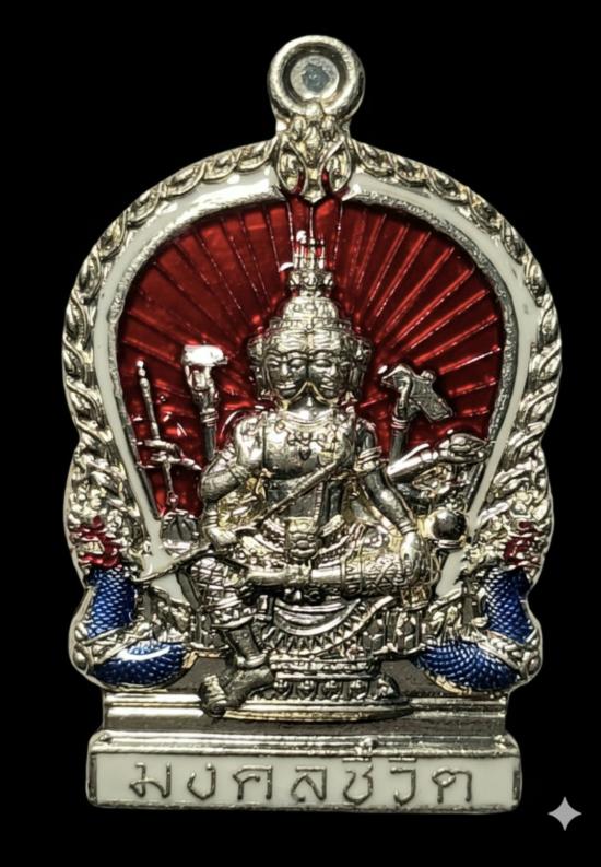 เหรียญพระพรหมสี่หน้า หลวงพ่อชำนาญ วัดชินวรารามวรวิหาร พิมพ์นั่งพานเล็ก รุ่นมงคลชีวิต เนื้ออ้าปาก้าลงยา ปี2562 |