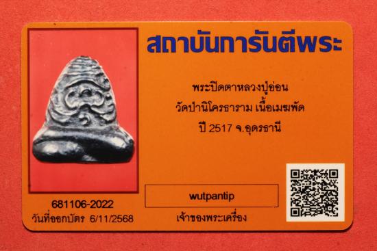 ***พระปิดตาหลวงปู่อ่อน วัดป่านิโครธาราม เนื้อเมฆพัด ปี2517 จ.อุดรธานี***พร้อมบัตรรับรอง