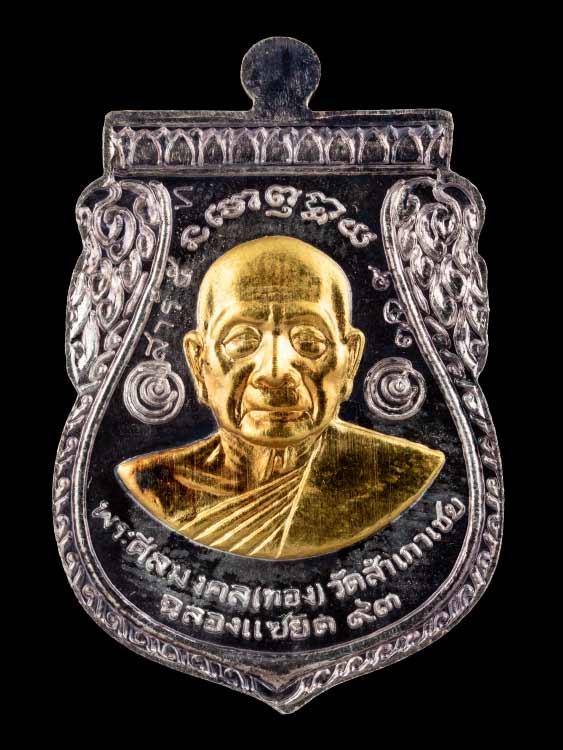 เหรียญหลวงปู่ทวด หลวงพ่อทอง รุ่นแซยิด 93 "เนื้อเงินหน้ากากทองคำหลังทองคำ"