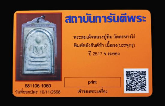 พระสมเด็จหลังยันต์ห้า เนื้อผงบรรจุกรุ หลวงปู่ทิม วัดระหารไร่ ะเนื้อผงๆ (บรรจุกรุ) ปี 2517 พร้อมบัตรรับรอง ครับ