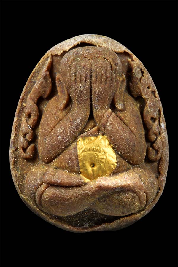 พระปิดตารุ่น รวยโชคลาภ หลวงพ่อพัฒน์ วัดห้วยด้วน จ.นครสวรรค์ เนื้อผงน้ำมันฝังแผ่นทองคำ ฝังหน้ากากเงิน โรยผงตะไบทองคำ (นำฤกษ์) พระหลักยุคต้นของหลวงพ่อพัฒน์ พระสวยเดิมนอนกล่อง รับประกันพระแท้จ้า