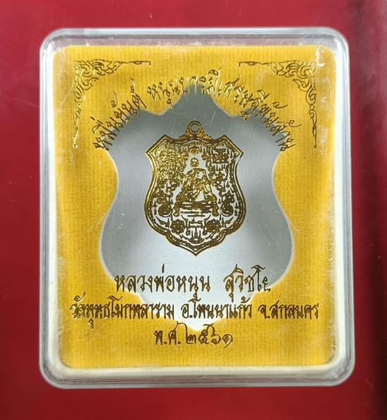 100 แดง...เหรียญหมื่นยันต์ หนุนบารมี เศรษฐีพันล้าน หลวงพ่อหนุน วัดพุทธโมกพลาราม ปี 61 เนื้อทองทิพย์ หมายเลข 85 |