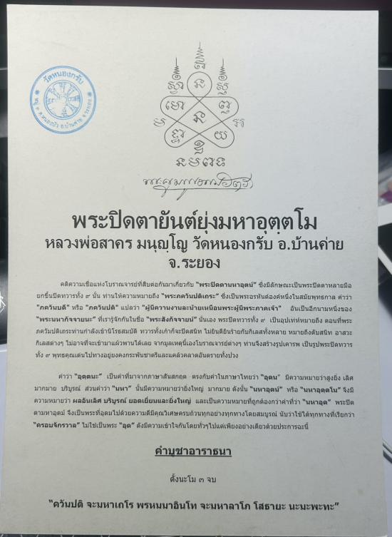 @กระดาษยันต์หลวงพ่อสาคร มนูญโญ วัดหนองกรับ จ.ระยอง@