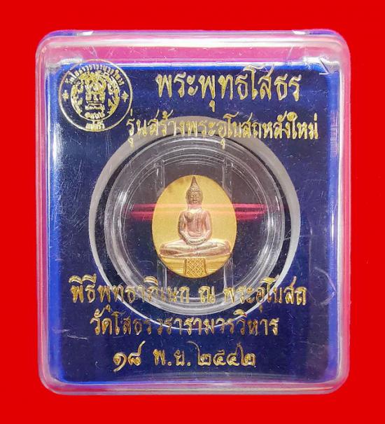 พระพุทธโสธร เนื้อเงินพ่นทราย 3 K พิมพ์เล็ก หลังภาพโฮโรแกรม รุ่นสร้างพระอุโบสถหลังใหม่ วัดโสธรวรารามวรมหาวิหาร พ.ศ.2542