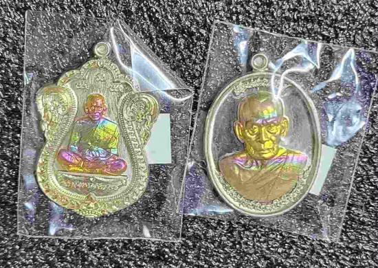 เคาะเดียวแดง เหรียญหลวงพ่อพัฒน์ รุ่นเลื่อนสมณศักดิ์ เนื้ออันปาก้าหน้ากากทองทิพย์ผิวรุ้ง รวม 2 เหรียญ