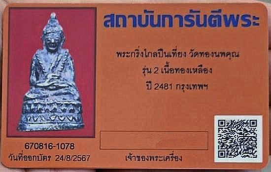 กริ่งไกลปืนเที่ยง ปี 2481 เจ้าคุณศรีสนธิ์วัดสุทัศน์เจ้าพิธีเททอง....บัตรgpra..