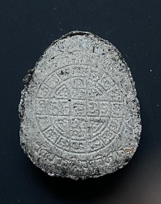 พระปิดตายันต์ดวงเล็ก ปี2523 สมเด็จพระญาณสังวร (เจริญ) วัดบวรนิเวศ_(เนื้อผงใบลาน)