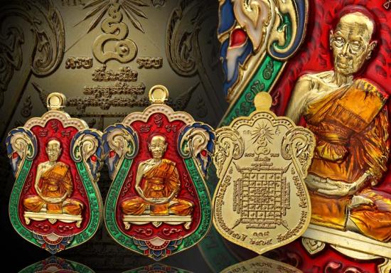 เหรียญเสมา8รอบที่ระลึกอายุวัฒนมงคล 96ปี เนื้อทองแดงกะไหล่ทองลงยาเย็น(กรรมการ) หมายเลข 338 พระครูสังฆกิจบูรพา(หลวงปู่บัว ถามโก) วัดศรีบุรพาราม(เกาะตะเคียน) จ.ตราด |