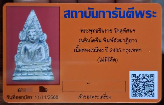 เคาะเดียว พระพุทธชินราช วัดสุทัศนฯ รุ่นอินโดจีน ปี2485 พิมพ์สังฆาฎิยาว มีบัตรครับ
