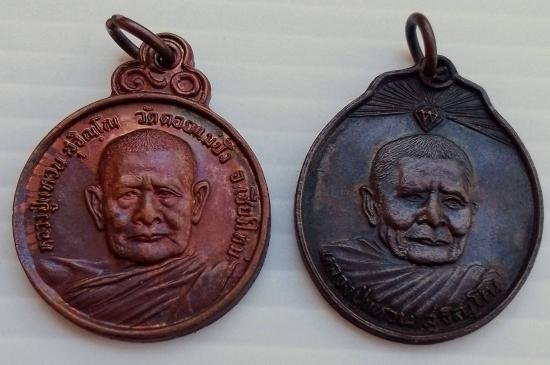 เหรียญทัพบกไทย ปี 20 และเหรียญร่มโพธิ์ ปี 21 หลวงปู่แหวน วัดดอยแม่ปั๋ง จังหวัดเชียงใหม่ รวมรับจำนวน 2 เหรียญ |