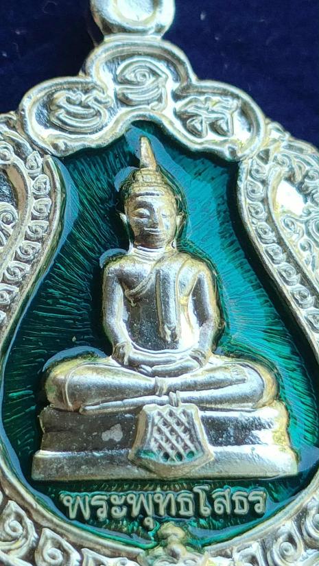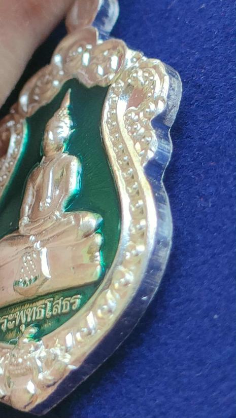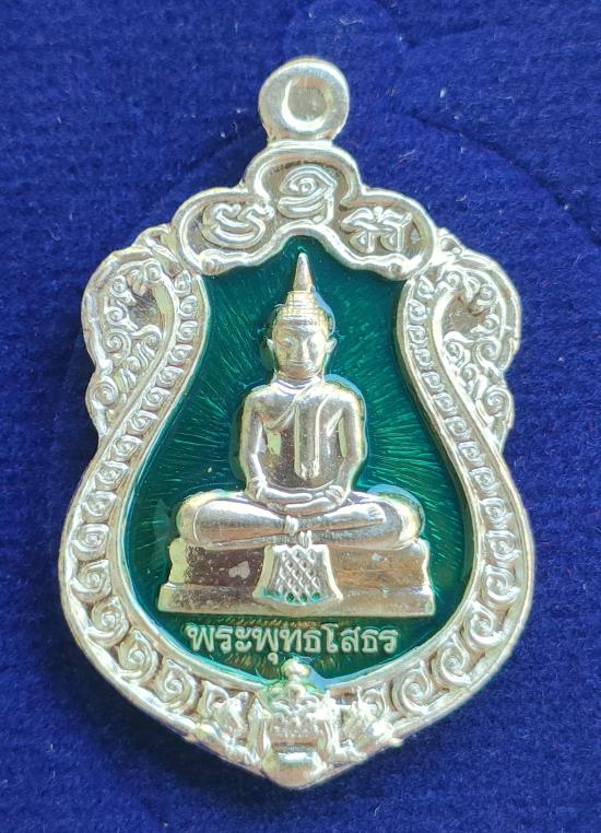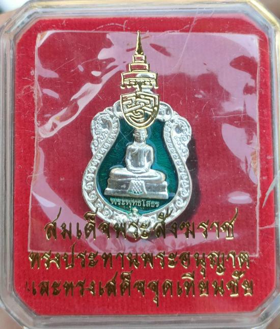 เหรียญเสมาพิมพ์เล็ก หลวงพ่อโสธร รุ่นสร้างโรงพยาบาล ปี61 เนื้อเงิน ลงยาพื้นเขียว เลข 1767 พร้อมกล่อง สมเด็จพระสังฆราชทรงประทานพระอนุญาตให้จัดสร้างและทรงจุดเทียนชัย เหรียญสวยมาก เหมาะสำหรับผู้หญิง/เด็ก