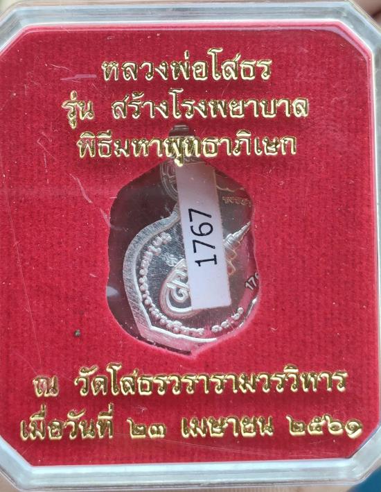 เหรียญเสมาพิมพ์เล็ก หลวงพ่อโสธร รุ่นสร้างโรงพยาบาล ปี61 เนื้อเงิน ลงยาพื้นเขียว เลข 1767 พร้อมกล่อง สมเด็จพระสังฆราชทรงประทานพระอนุญาตให้จัดสร้างและทรงจุดเทียนชัย เหรียญสวยมากคับ เหมาะสำหรับผู้หญิง/เด็ก ผู้ชายเลี่ยมแขวนก็สวยคับ สีแดงถูกโฉลกคนเกิดวันพุธ