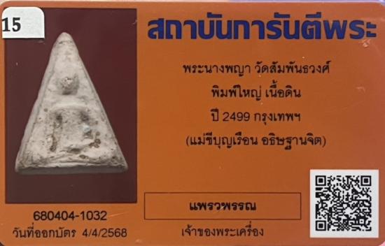 พระมงคลมหาลาภพระนางพญาพิมพ์ใหญ่เนื้อดินปี2499.พระสภาพสวยเดิมมาคะ.พร้อมบัตรตรวจเรียบร้อย.