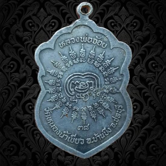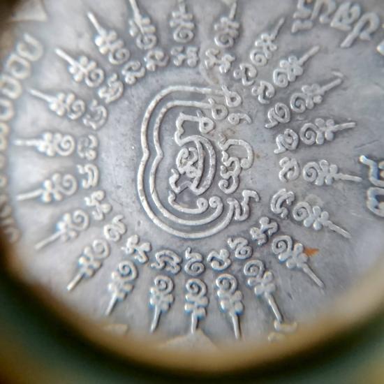 พระครูวิทิตพัฒนาการ (จ้อย "จาดแก้ว" พุทธสโร) วัดหนองน้ำเขียว ต.คลองกิ่ว อ.บ้านบึง จ.ชลบุรี หลังยันต์ เนื้อเงินลงยา ปี 2538