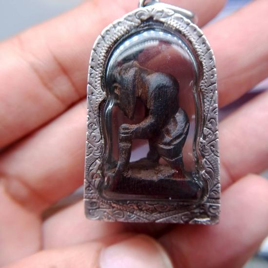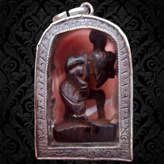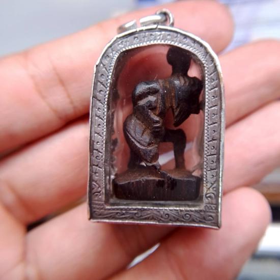 ชูชกไม้แกะหลวงปู่ทิม วัดละหารไร่ เนื้อไม้ตับเต่า เก่าเดิมๆ พร้อมตลับเงิน