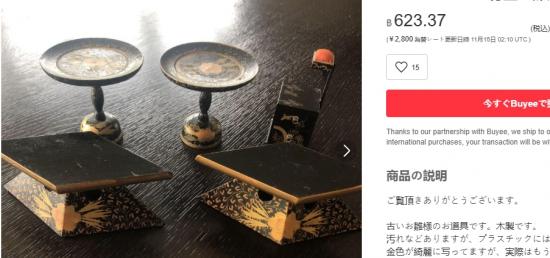 ชุดเครื่องบูชาขนาดเล็ก 4 ชิ้น เครื่องเขินญี่ปุ่น (ชิกกิ) ขนาดเล็ก ซึ่งตกแต่งด้วยเทคนิคที่เรียกว่า มากิเอะ (Maki-e) |