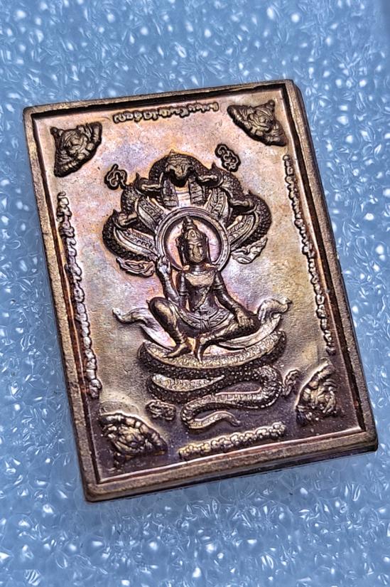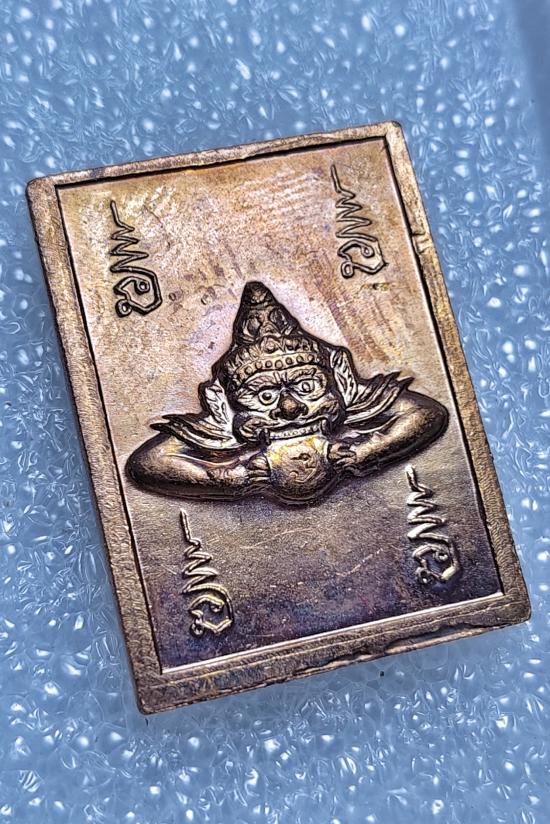 เหรียญแสตมป์สี่เหลี่ยม จตุคามรามเทพหลังราหู รุ่น มหาราช มหาลาภ เนื้อทองแดง