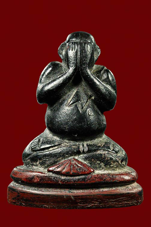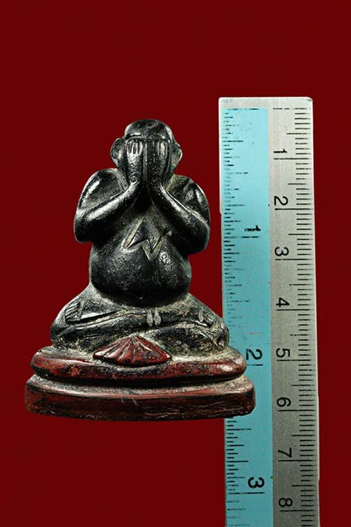 พระปิดตา ไม้แกะ มีจาร น่าจะสายสะพานสูง ไม่ทราบยุค ขนาดสูงประมาณ 2.5 นิ้ว |