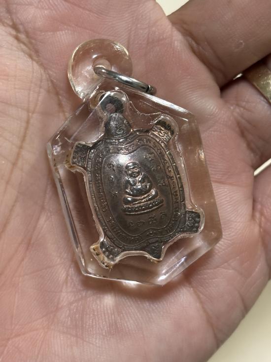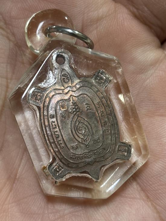 เหรียญพญาเต่าเรือน รุ่นไตรมาส (พิมพ์เล็ก) เนื้อนวะ หลวงปู่หลิว ปี 36 เลี่ยมกรอบพร้อมใช้