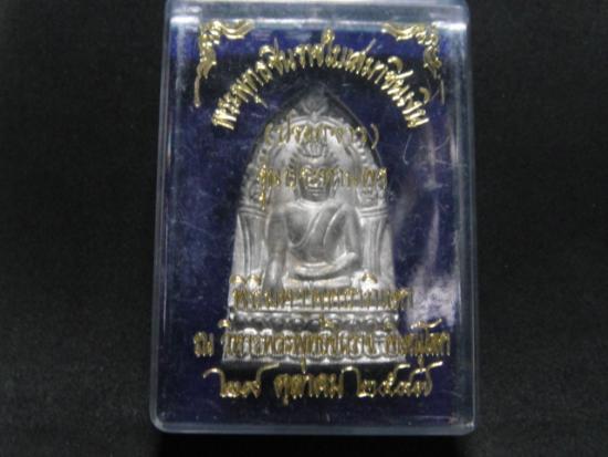 วัดใจเคาะเดียว.......100.......พระพุทธชินราชใบเสมาชินเงิน รุ่นประทานพร เนื้อชินเงิน (ปรอทขาว ) ปี 2547 ( ข้างหลังด้านล่างตอกโค๊ต นะ ) สวยคากล่องเดิมๆ |
