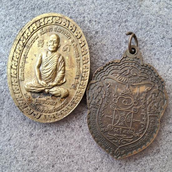 เหรียญเทพโอสถ ไร้โรคภัย และเหรียญ สจ.เม้ง หลวงพ่อนก วัดเขาบังเหย ชัยภูมิ |