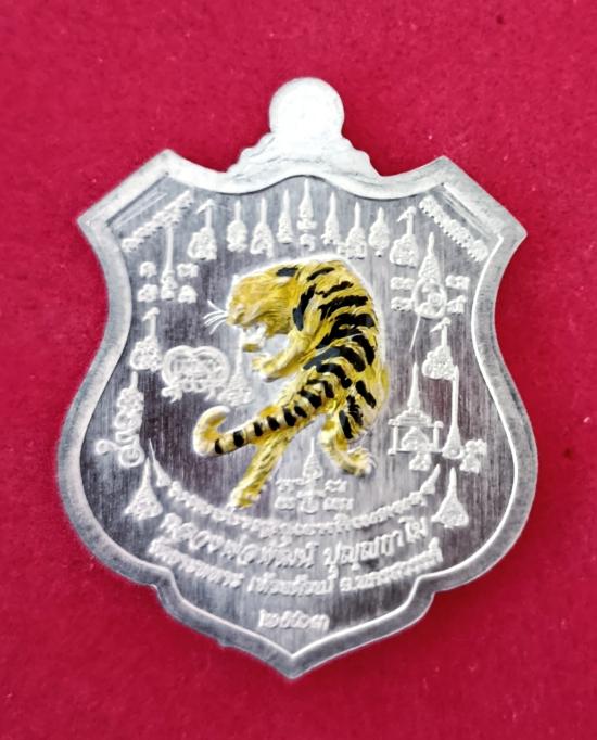 หลวงพ่อพัฒน์ รุ่นพยัคฆ์เจ้าพระยา เนื้อเงินบริสุทธิ์ ลงยาจีวร หลังลงยาเสือ NO.๖๙๖ เหรียญสวย พิธีใหญ่น่าสะสม