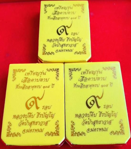 เคาะเดียวแดง.....เหรียญรุ่นเสือคาบดาบ ที่ระลึก อายุครบ 9 รอบ หลวงปู่คีบ วัดป่าสุทธาวาส จังหวัดนครพนม ปี 2567 รับจำนวน 3 เหรียญ พร้อมกล่องเดิมสภาพสวย |