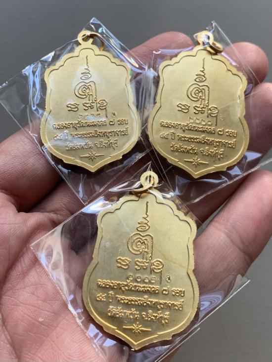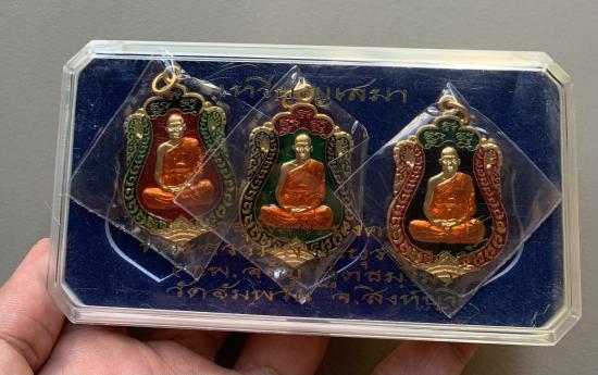 วัดใจ40 เหรียญเสมา7รอบ ฉลองอายุวัฒนะ 84ปี หลวงพ่อจรัญ วัดอัมพวัน จ.สิงห์บุรี ชุดกะหลั่ยทองลงยาสามสี 1 ชุด3 องค์ (2)