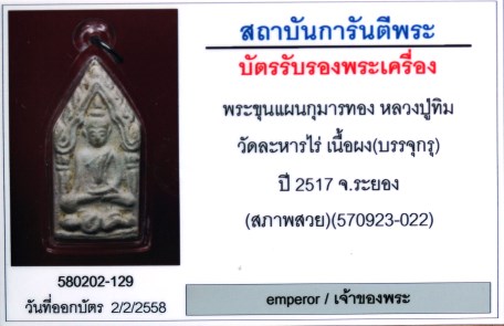 พระขุนแผนกุมารทอง หลวงปู่ทิม วัดละหารไร่ เนื้อผง(บรรจุกรุ) บัตรสภาพสวย