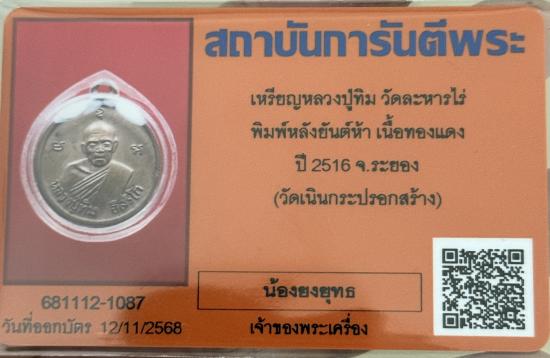 หลวงปู่ทิม วัดละหารไร่ ปี 2516 ออกวัดเนินกระปรอก พร้อมบัตรรับรองพระแท้