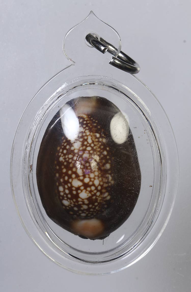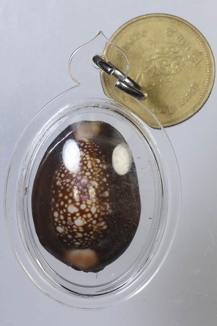 วัดใจ**เครื่องราง เบี้ยแก้ ปรอทวิ่งอยู่*{ เส้นเกศา+ตอกโค๊ต }*ไม่ทราบที่ เลี่ยมพร้อมใช้....สวยครับ |