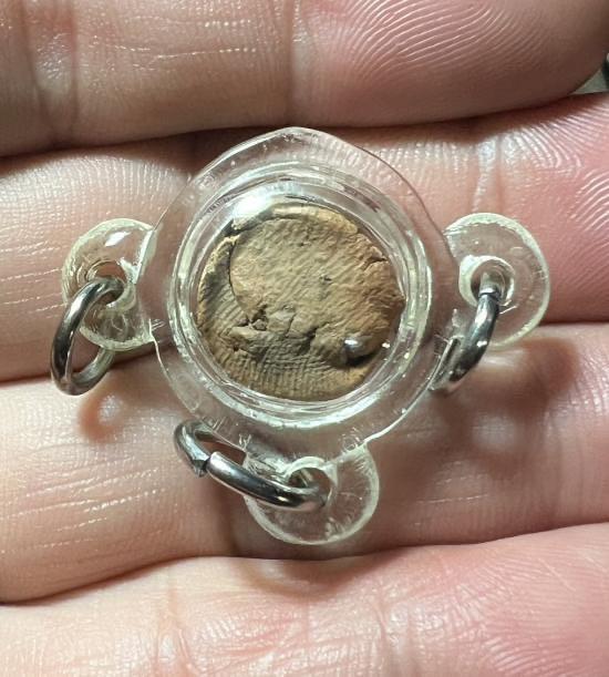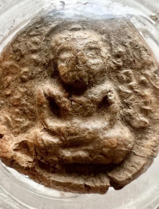 พระเม็ดกระดุมศรีวิชัย พิมพ์ต้อ กรุพุนพิน จ.สุราษฎร์ธานี เนื้อดินเผา อายุกว่า 1000 ปี สภาพเดิมๆจากกรุ เลี่ยมพร้อมใช้ครับ