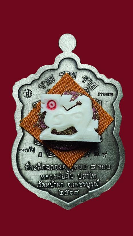 เนื้ออัลปาก้าซาตินหน้ากากเพ้นเสมือนจริงหลังอุดมวลสารเกศาจีวรฝังสิงห์งาแกะ หมายเลข19. สร้าง 31 องค์. พร้อมบัตรรับรองพระแท้ PSGA ป๋องสุพรรณ การันตี |