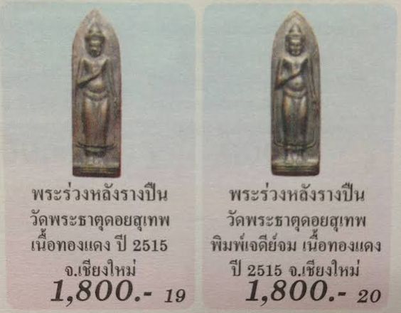 พระร่วงหลังรางปืน วัดพระธาตุดอยสุเทพ พิมพ์หลังเจดีจม เนื้อทองแดง ปี2515 หลวงปูโต๊ะ หลวงพ่อกวย และครูบาชุ่มร่วมปลุกเสกราคาต่ำกว่าทุนครับ พร้อมบัครการันตรีครับก่อนหน้านี้ราคาไป1800ครับ |