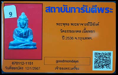 พระพุทธหยกแกะ ปี2536 หลวงพ่อวิริยังค์ วัดธรรมมงคล กทม. |