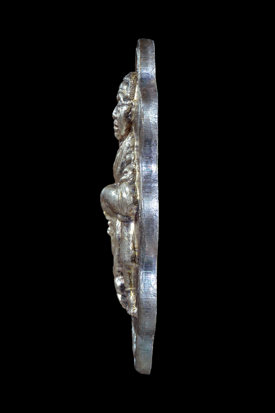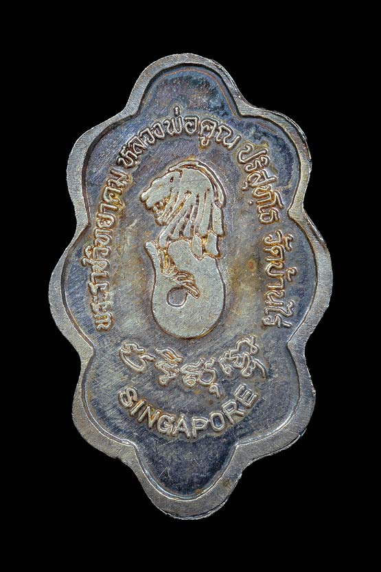 เหรียญ พระราชวิทยาคม หลัง สิงโตพ่นน้ำ รุ่น คูณมหาเศรษฐี ลูกศิษย์ สิงค์โปร สร้างถวาย ( เนื้อเงิน ) ไม่ทราบปีสร้าง ( เหรียญใหญ่ ขนาด สูง 4 ซ.ม. , กว้าง 2.5 ซ.ม. ) กล่องเดิม