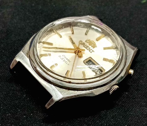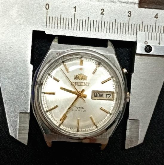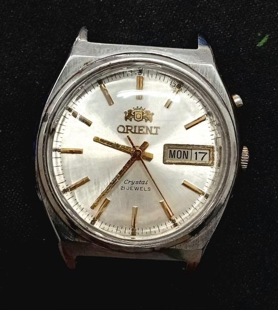 วินเทจ ORIENT Automatic crystal 21 jewels japan 36 มม.รวมเม็ดโดยประมาณเดินปกติวันที่ปกติเปลี่ยนเร็วได้ ปุ่มกดใช้ได้ หาสายหนังใส่สวยเลยครับ |