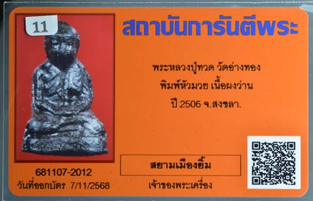 รายละเอียด พระหลวงปู่ทวด วัดอ่างทอง พิมพ์หัวมวย เนื้อผงว่าน ปี2506