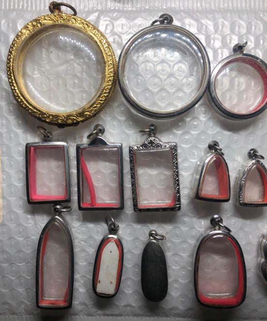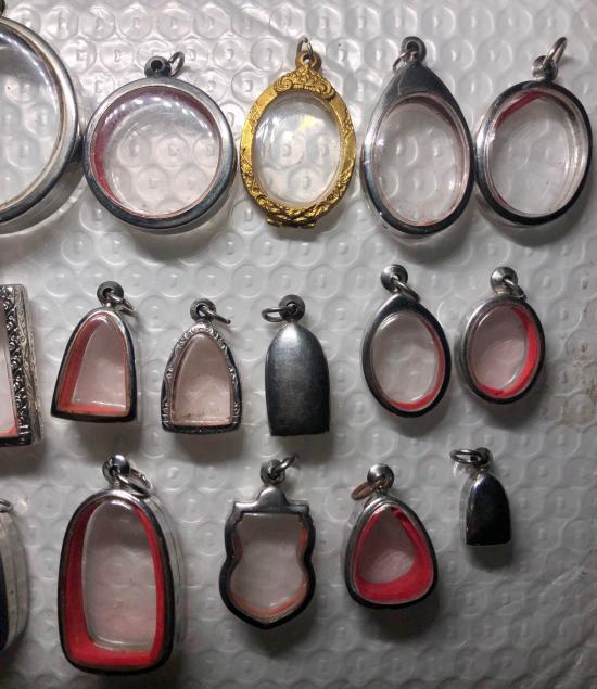 กรอบพระสแตนเลสใส่พระเครื่อง มือสอง คละพิมพ์ทรง 21 ใบ |