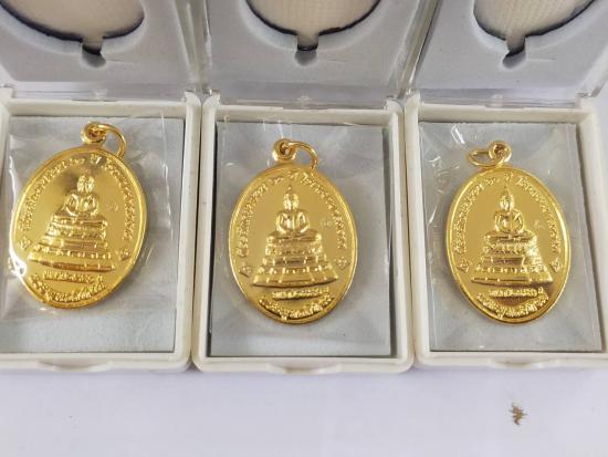 หลวงปู่บัว เหรียญพระพุทธสิหิงค์ ที่ระลึก 60 ปี โรงพยาบาลตราด เนื้อกะไหล่ทอง 3 เหรียญ พร้อมกล่อง |