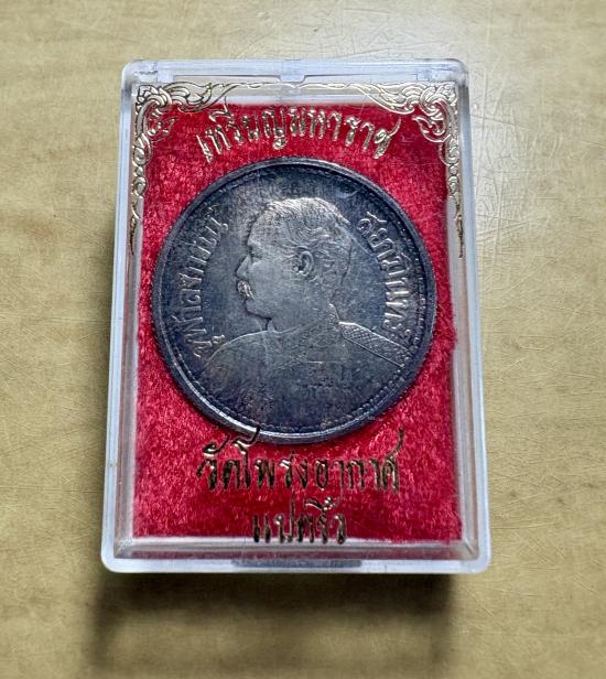 เหรียญมหาราชเนื้อเงิน หลวงพ่อสมชายวัดโพรงอากาศ ไม่ผ่านใช้กล่องเดิม |