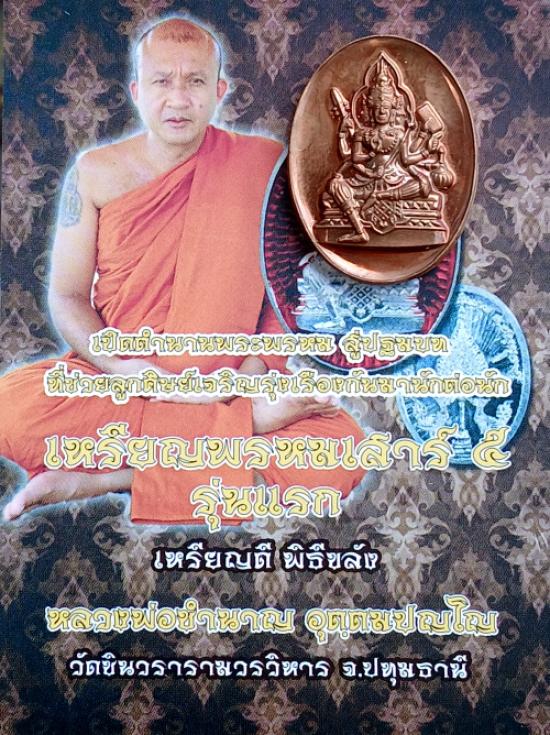 เหรียญพรหมเสาร์ห้า รุ่นแรก เนื้อทองแดง หลวงพ่อชำนาญ วัดชินวราราม ปี 60 เลข 59