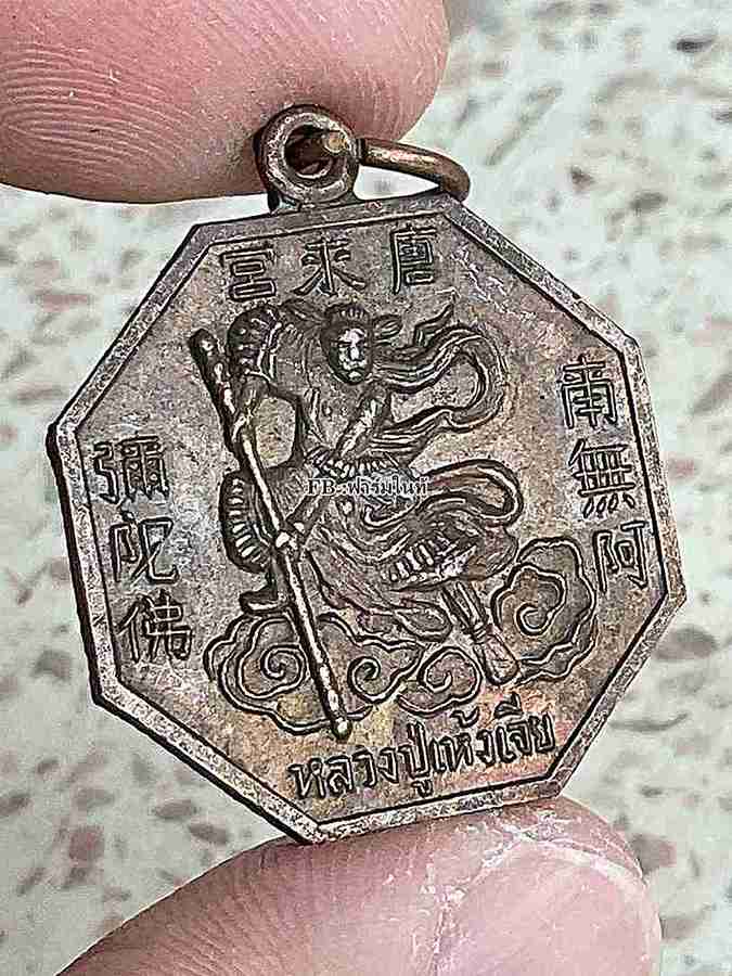 *เคาะเดียวแดงครับ เทพเจ้าจีน คลิ๊กที่ฆ้อนมีอีกเยอะ* เหรียญหลวงปู่เห้งเจีย (เทพเจ้าเห้งเจีย ไต่เซี่ยฮุกโจ้ว) เนื้อทองแดงผิวไฟ สภาพสวยเดิม ด้านหลัง ยันต์โป๊ยข่วยกันชง สวยเดิม