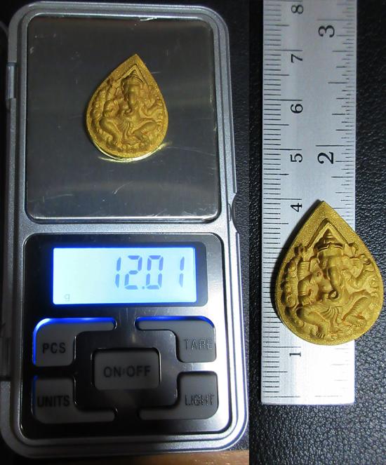 พระพิฆเนศวร ชุดเนื้อทองคำพิมพ์ใหญ่ (นน. 12.01 กรัม) เงิน ทองทิพย์ ด้านหลัง ญสส. พร้อมการ์ด และกล่องไม้ หมายเลข 530