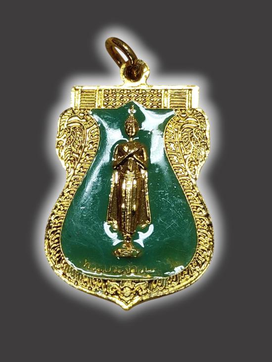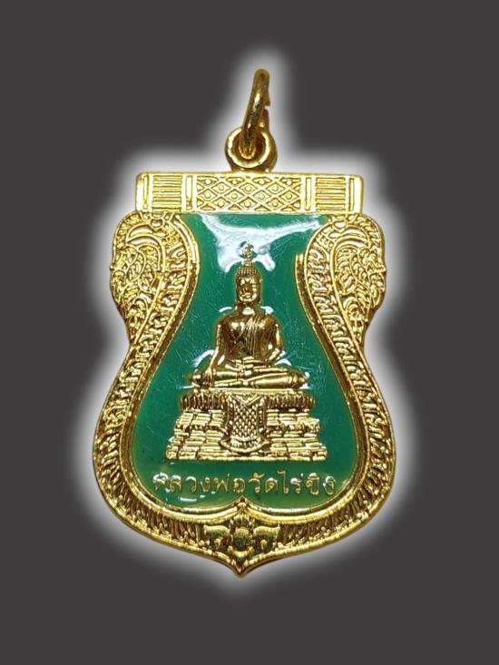 A3731.เหรียญ หลวงพ่อวัดไร่ขิง หลัง พระประจำวันศุกร์ ปางรำพึง กะไหล่ทองลงยาเขียว เคาะเดียวเเดง