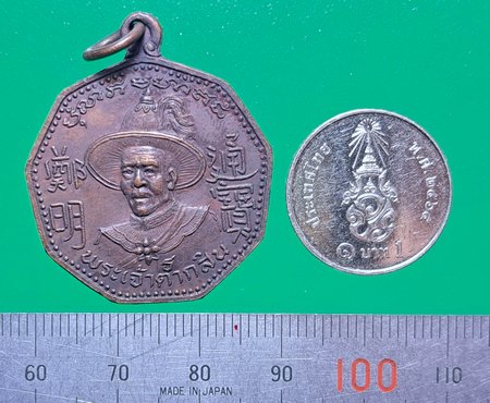 200.- @@ เหรียญเก้าเหลี่ยม พระเจ้าตากสิน วัดอินทราราม ปี 2527 สวยๆ @@