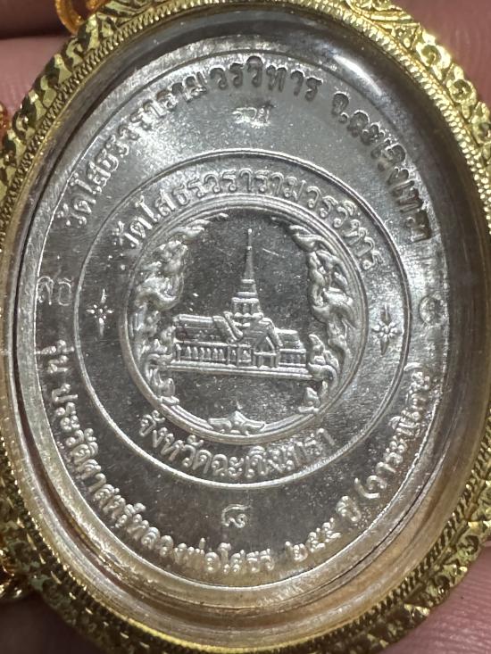 เหรียญหลวงพ่อโสธร เนื้อเงินลงยาเครื่องทรงหน้ากากทองคำแท้ หมายเลข 8 เลี่ยมกรอบทองอิตาลีพร้อมสร้อยทองอิตาลี